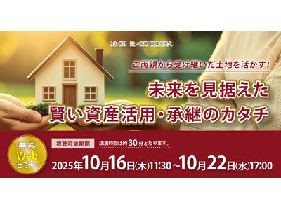 辻・本郷 税理士法人(本社:東京都新宿区、理事長:桑木小恵子)は、2025年10月9日より「ご両親から受け継いだ土地を活かす! 未来を見据えた賢い資産活用・承継のカタチ」セミナーを開催いたします。本セミナーでは、不確実な時代でもその土地を最大限に活かすためのヒントをお伝えします。