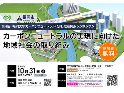 福岡大学は、10月31日(金)、「第4回福岡大学カーボンニュートラル推進拠点シンポジウム」を開催します。地球温暖化という世界規模の課題に対応するとともに、我が国が目指す2050年のカーボンニュートラル(CN)社会の創生に向けて、本学では2022年4月に「福岡大学CN推進拠点」を設置し、CN推進プロジェクトが始動しました。本シンポジウムは、本学におけるCNの教育・研究や地域社会・企業の取組内容を社会に広く知ってもらうために2022年から開催しています。