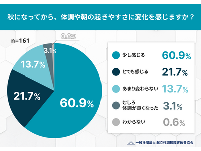 - 8割超(82.6%)が「秋になって体調や起きやすさに変化を感じる」