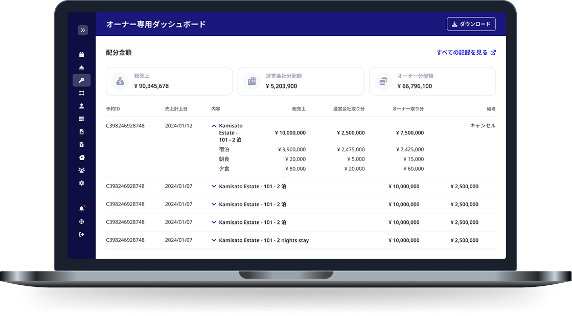 透明性の高い情報共有- - オーナーはポータルからリアルタイムで予約情報や収支を確認可能