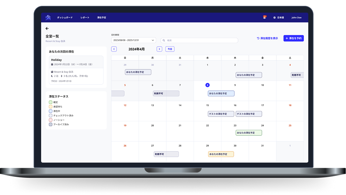 オーナーステイ予約機能を新搭載- - オーナーはポータルから稼働カレンダーを確認し、空き日程で滞在予約が可能