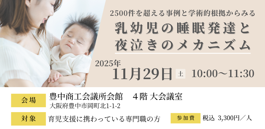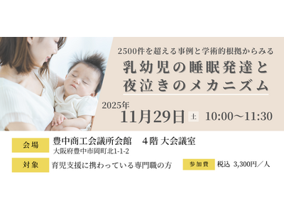 (株)バイタルネット(本社:宮城県仙台市、代表取締役:一條武)が運営する GuuMin(ぐーみん)は2025年11月29日、大阪府豊中市にて「乳幼児の睡眠発達と夜泣きのメカニズム」講座を開催します。