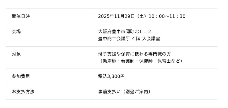 なお、本講座は「豊中市子育て支援サービス補助金事業」の採択事業の一環として開催します。