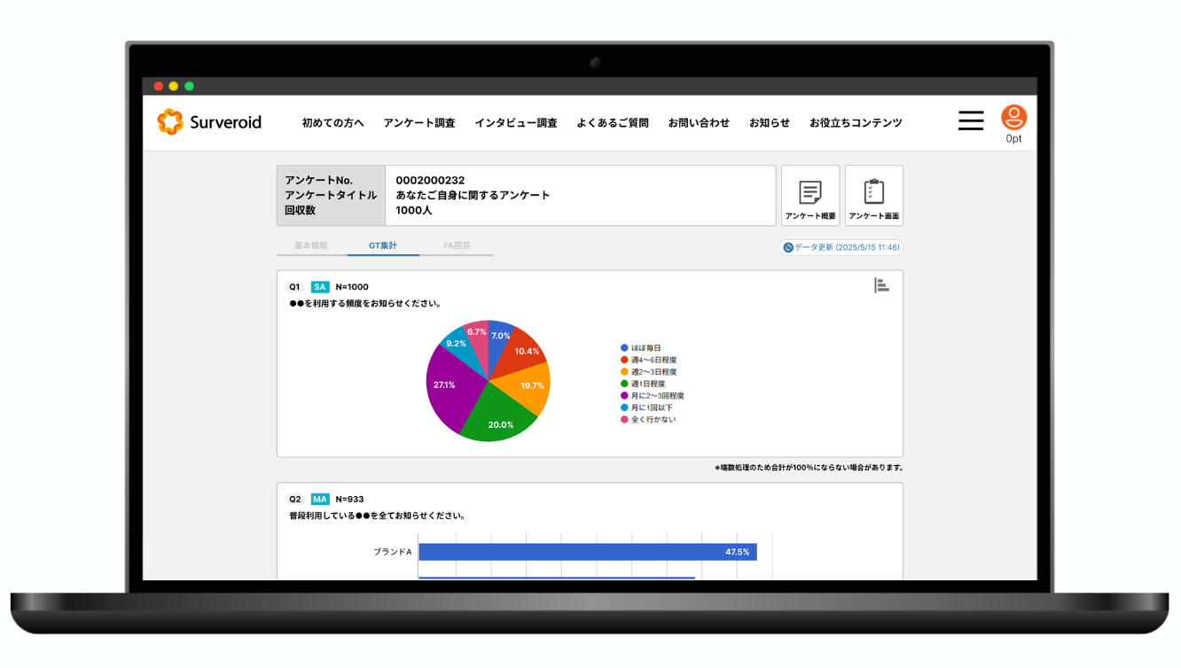 変化の激しい現代において生活者に直接問いかけてデータを得る「アスキングデータ」の重要性が更に高まる中、「新規事業での商品・サービスのニーズ調査」「社内・社外の提案資料の裏付けデータ」「クリエイティブの効果測定」「商品の認知率調査」等、直接問いかけることでのみ検証ができるシーン、即時性が求められるシーンで Surveroid は皆様にご利用頂いています。
