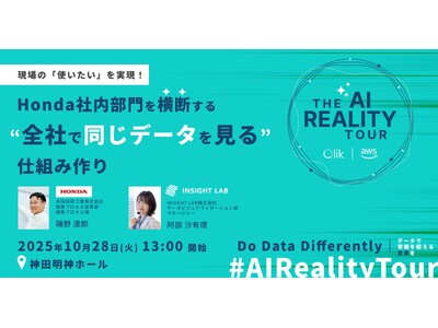 INSIGHT LAB株式会社(本社:東京都新宿区、代表取締役 社長 CEO:遠山 功、証券コード:227A、以下、当社)は、2025年10月28日(火)に神田明神ホールで開催される「The AI Reality Tour Tokyo 2025」(主催:クリックテック・ジャパン株式会社)に出展し、パートナー講演および展示ブースにて、当社が支援した本田技研工業株式会社(以下、Honda)の部門横断DX事例をご紹介いたします。