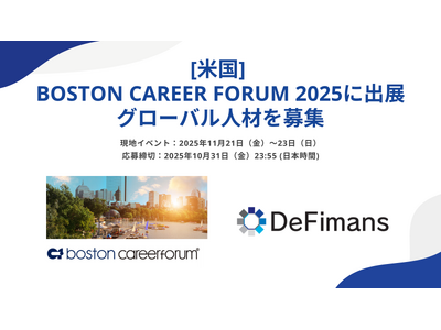 株式会社DeFimans(所在地:東京都港区、代表取締役:小野 暢思・佐藤 太思、以下「DeFimans」)は、2025年11月21日(金)~23日(日)に米国・ボストンで開催される「BOSTON CAREER FORUM 2025」に出展いたします。