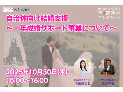 このたび、企業版ふるさと納税を活用した地域課題解決プラットフォーム「river(リバー)」を運営する株式会社カルティブ(本社:神奈川県横浜市、代表取締役:池田 清)は、「地域課題解決シリーズセミナー」のとして2025年10月30日(木)15:00~16:00に、自治体担当者を対象としたオンラインセミナー「自治体向け結婚支援~一年成婚サポート事業について~」を開催します。