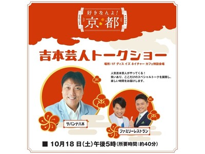 京都高島屋S.C.専門店ゾーン[T8](運営:東神開発株式会社)では、京都ゆかりの人気芸人によるスペシャルトークイベント「T8 吉本芸人トークショー」を開催します。