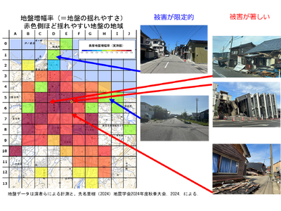 能登半島では、立地のリスクによる被害が相次ぎました。特に昨年5~10月に調査を実施した輪島市街を中心に、立地の違いにおける被害特性、ハザードマップ想定外の被害、揺れやすい地盤の地域における被害集中と、復旧復興にあたって留意したい点などについて地盤の専門家の視点から切り込みます。