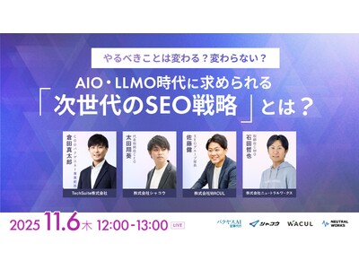 本ウェビナーでは、TechSuite、シャコウ、WACUL、ニュートラルワークスの4社が連携し、次世代の検索環境において成果を出し続けるために、キーワード戦略の再構築、検索ボリュームとエンティティの戦略的な使い分け、そして従来のSEO資産を活かしながら新時代に適応する具体的なアプローチを詳しく解説します。