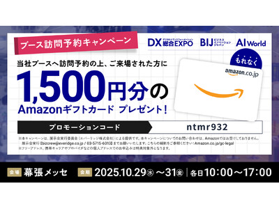 CBTSのブースへ訪問予約の上、ご来場で1,500円分のAmazonギフトカードをプレゼント!
