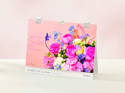 製品1点以上ご購入で、直営店舗限定の「ファンケルオリジナルカレンダー2026」をプレゼントします。お客様アンケート(2025年5月実施)で1番人気のデザインで表紙を彩っています。ロスフラワー(R)の生き生きとした美しさが、笑顔や癒しをお届けできるようなデザインです。