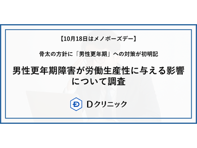 Dクリニック(東京、新宿、札幌、大阪、名古屋、福岡 計6クリニック)では、10月18日の“メノポーズデー”を迎えるにあたり、男性120名に対してAMSスコア(男性更年期障害の症状を評価するための質問票)と、WHO-HPQスコア(健康問題が労働パフォーマンスに与える影響を測定する質問票)について調査※1を実施いたしました。
