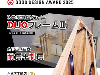 木下工務店は他社に先駆けていち早く制震ダンパーを標準採用し、研究・開発を続けてきました。2024年に制震性能、施工性を向上させた次世代型制震ダンパー「DUOフレームII」が誕生。その性能と企業としての姿勢を評価していただき、2025年度グッドデザイン賞を受賞いたしました。