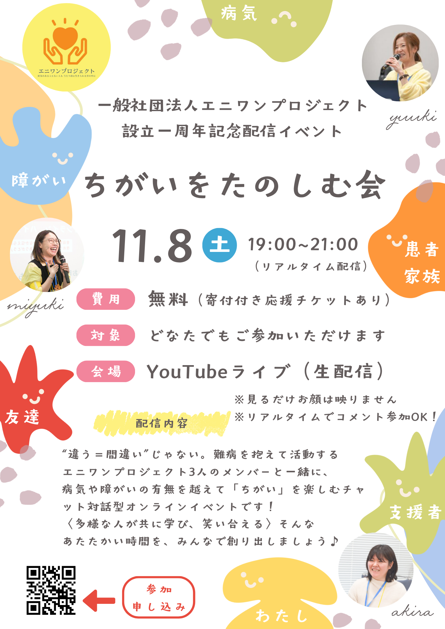 一般社団法人エニワンプロジェクト設立1周年記念【ちがいをたのしむ会】ポスター