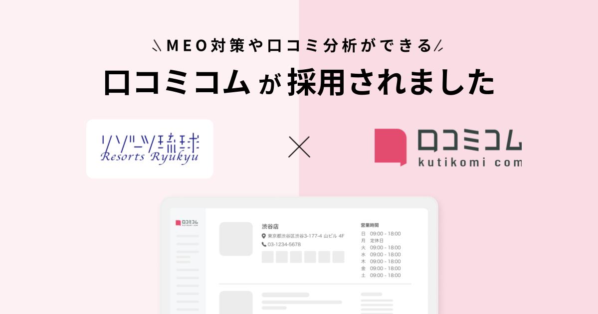 株式会社mov(代表取締役:渡邊 誠、本社:東京都渋谷区)が提供する、店舗向け集客一元化プラットフォーム「口コミコム」が、リゾーツ琉球株式会社(代表取締役:兼城 賢成、本社:沖縄県豊見城市)において、ホテルおよびレストラン計13施設に導入されたことをお知らせいたします。これによりGoogleビジネスプロフィールやGoogleマップを活用したMEO対策の強化に加え、AIを活用した高度な口コミ分析、そして多言語での情報発信によるインバウンド対応力の向上を実現いたします。