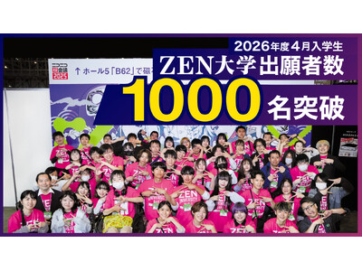 ZEN大学は、2026年4月入学生の出願者数が、受付開始から約1か月となる2025年10月5日時点で1,000名を超えたことをお知らせします。