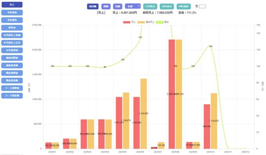 新機能では、日別・月別・年別の売上や予約数、来院数、患者属性などをリアルタイムでグラフ表示することで、視覚的かつ直感的に経営データの分析が可能となります。
