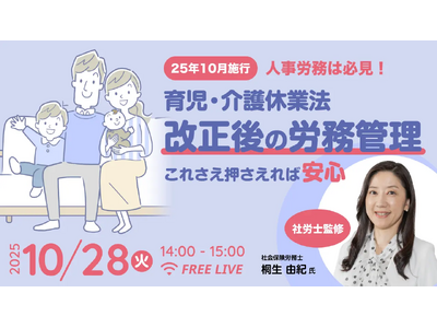 jinjer株式会社が、2025年10月28日(火)に開催するウェビナー「【10月施行】法改正後の混乱を乗り切る!システム活用で実現する、育児・介護休業法改正のスムーズな実務対応術」に、Authense法律事務所のグループ法人であるAuthense社会保険労務士法人の代表社労士・桐生 由紀が登壇することをお知らせします。就業規則の改定から社内周知までを「明日から使える4ステップ」 に沿って、具体的に解説します。