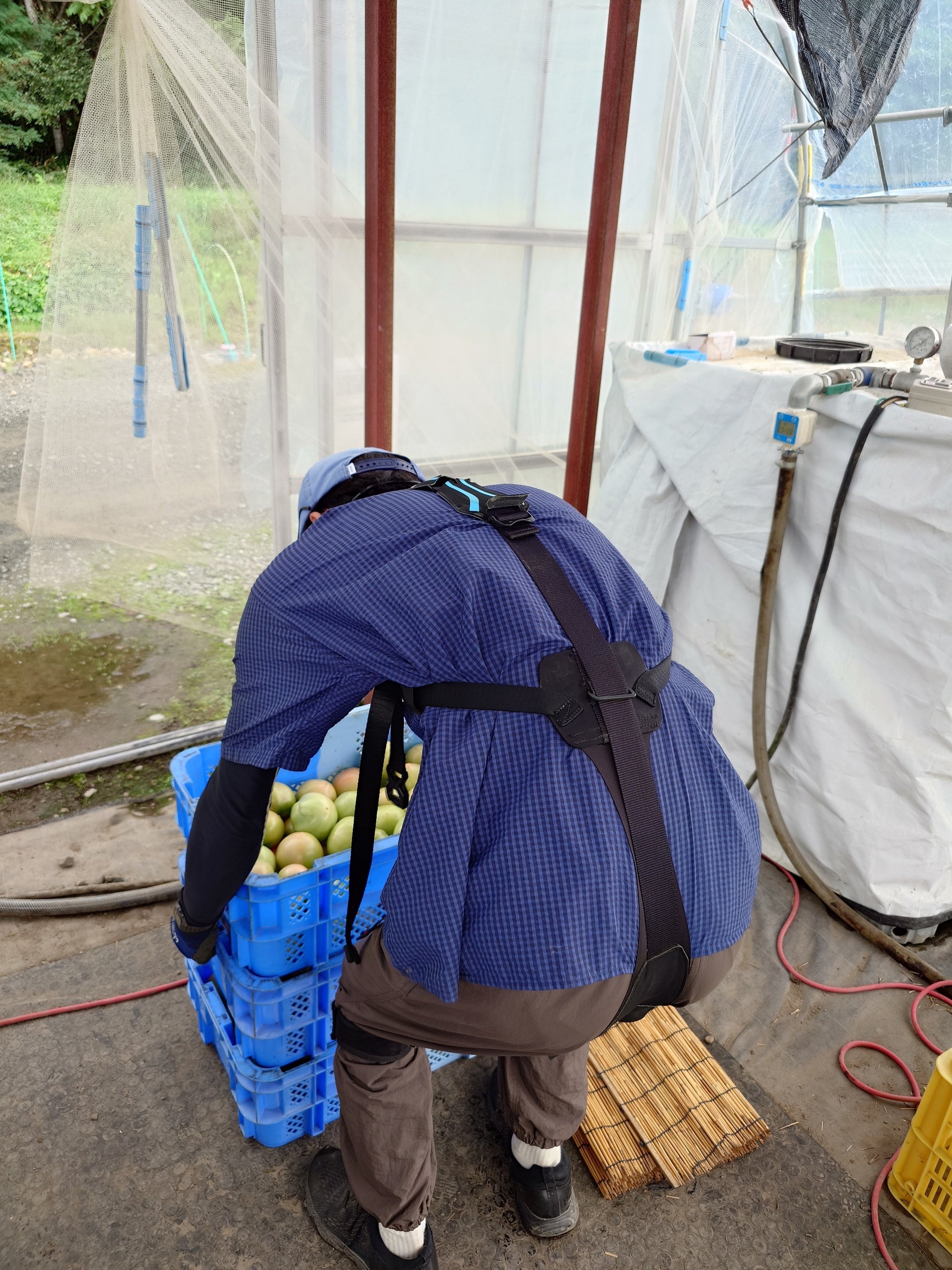「収穫やトラックへの積み込み作業では、どうしても腰への負担が大きく、従来はコルセットを試してきました。しかし暑くて動きにくく、十分な効果を感じられませんでした。今回EASY-LIFTを導入したことで、前かがみの作業が格段に楽になり、腰の痛みが軽減されました。普段通りに動ける点や、装着したまま車の運転もできる点がとても助かっています。」