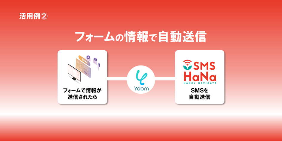 日本テレネット株式会社(本社:京都市、代表取締役: 瀧 麻由香、以下 日本テレネット)が提供するSMS送信サービス「SMS HaNa」 は、あらゆるデスクワークを自動化するハイパーオートメーションツール「Yoom(ユーム)」を開発・運営するYoom株式会社(本社:東京都千代田区、代表取締役:波戸崎 駿)とAPI連携を開始しました。