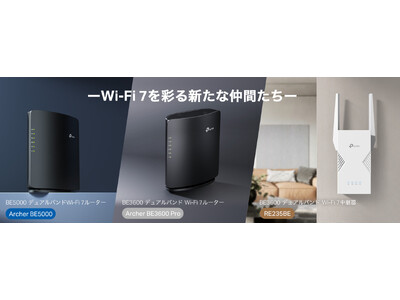TP-Link Systems Inc.(所在:米国)の日本支社である※、ティーピーリンクジャパン株式会社(所在:千代田区外神田/以下TP-Link)は、BE5000 デュアルバンドWi-Fi 7ルーター「Archer BE5000」、BE3600 デュアルバンドWi-Fi 7ルーター「Archer BE3600 Pro」、BE3600 デュアルバンドWi-Fi 7中継器「RE235BE」を、2025年10月30日(木)に国内向けに販売開始します。