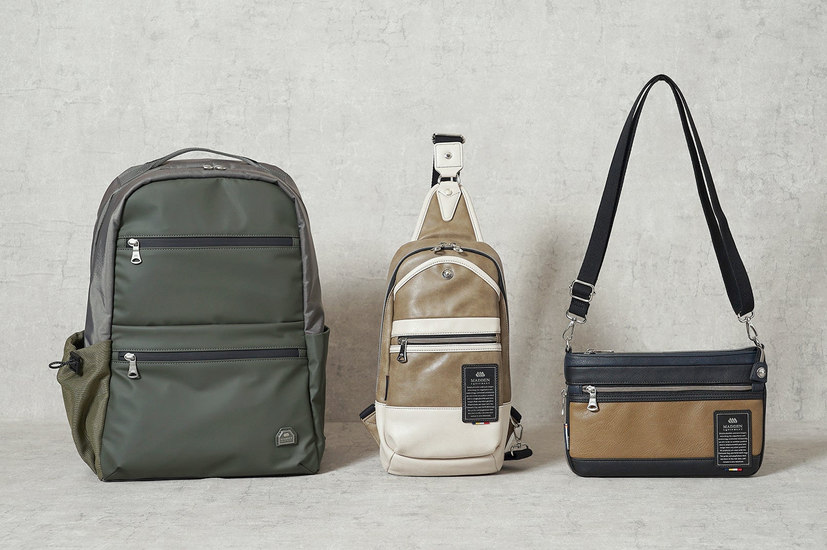その他、MADDEN EQUIPMENT(メデン イクイップメント)は大人気のボディバッグやリュックやショルダーバッグ、トートバッグなど日常使いにもビジネスシーンにも大活躍な商品を多く取り揃えています