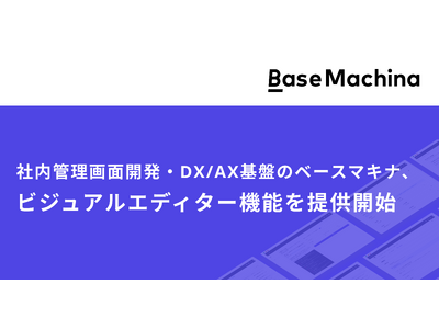 Web事業者様の社内管理画面をはじめとして、社内のERP補完・リプレイスなどにも使えるDX/AX基盤の「ベースマキナ」を提供する株式会社ベースマキナ(東京都中央区、代表取締役社長 高橋誠二)は、この度直感的な操作で画面を作成できる「ビジュアルエディター機能」を提供したことをお知らせいたします。