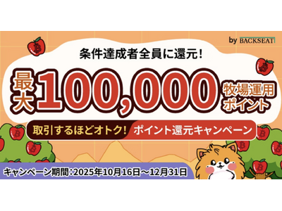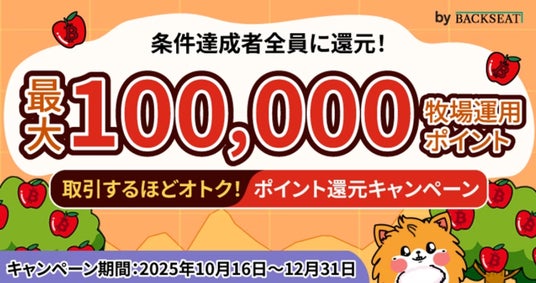 BACKSEAT暗号資産交換業株式会社(本社:東京都港区、代表取締役会長:林 政泰、代表取締役社長:前田 慶次、以下「BACKSEAT」)は、Ponta公式企画「万福フェスティバル」の実施にあわせ、2025年10月16日(木)より、「Pontaビットコin牧場」において、取引量に応じて最大10万牧場運用ポイントを還元するキャンペーンを開始いたしました。