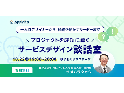 株式会社アピリッツは、2025年10月22日(水)、「【一人目デザイナーから、組織を動かすリーダーまで】プロジェクトを成功に導くサービスデザイン談話室」を開催いたします。