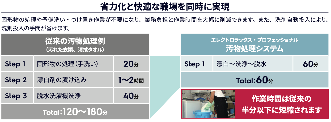 エレクトロラックス・プロフェッショナルは、業務用洗濯機器、厨房機器を開発・製造・販売するスウェーデン発祥のグローバルメーカー。創業100年以上の歴史を持ち、世界110カ国以上で事業展開しています。日本では医療・介護・ホテル・コインランドリー向けに省エネと省人化を両立するランドリーソリューションを提供。特に業務用洗濯機器分野では、エネルギー効率とデジタル化技術を融合した製品開発に注力し、カーボンニュートラル実現に向けた産業界の脱炭素化を支援しています。