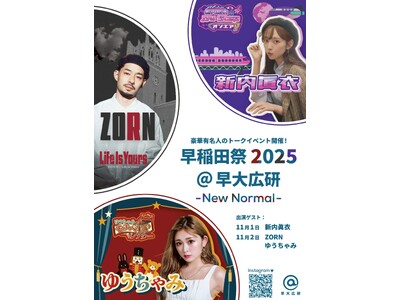 2025年11月1日、2日に早稲田大学で開催される早稲田祭で、元乃木坂46の新内眞衣、