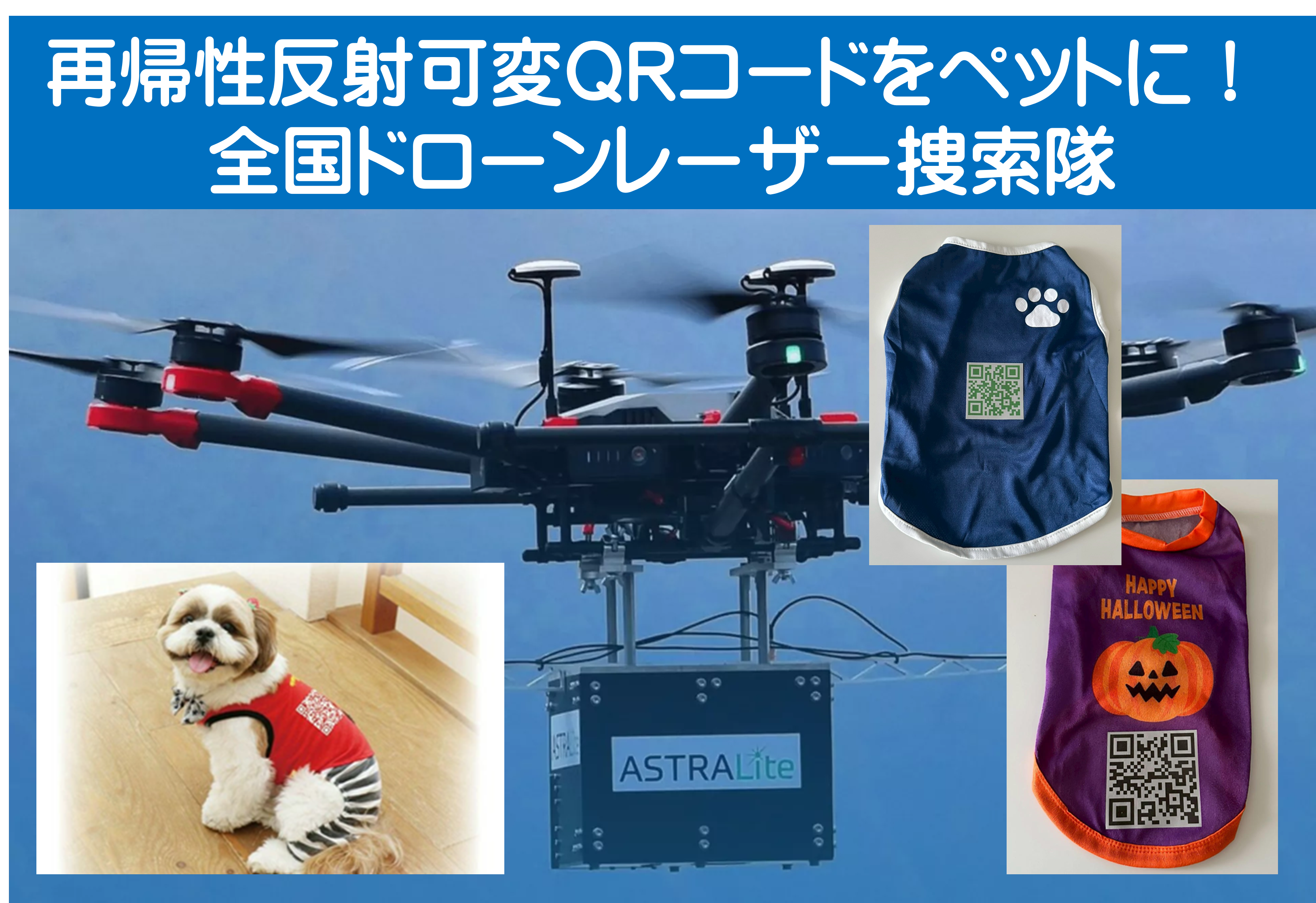 【NPO法人光探索協会】(大阪市、理事長:前田佳伸)は、東日本幹事企業のAPEX株式会社(東京都、代表:下戸優輔)および西日本幹事企業のSMGコンサルタント株式会社(山口市、代表:岡村瞳)と協同して「全国ドローンレーザー捜索隊」を組織しました。「再帰性反射可変QRコード」をあなたの可愛いいペットの服に装着しておけば、南海トラフ大震災の津波や屋外キャンプなどの迷子時にレーザー捜索が可能になります。当協会では、令和7年10月20日(月)11時から「再帰性反射可変QRコード」をあなたのペット服に簡単に装着できる普及・無料講習会を開催致します。当日は、装着希望のペット服をご持参ください。
