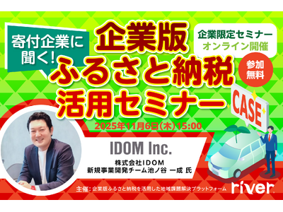 企業版ふるさと納税を活用した地域課題解決プラットフォーム「river(リバー)」を運営する株式会社カルティブ(本社:神奈川県横浜市、代表取締役:池田 清)は、企業担当者限定で「寄付企業に聞く!企業版ふるさと納税活用セミナー」を開催いたします。