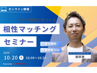 10月20日(月) 16時より、スキマ時間を活用して自分に合ったFPを探すことができる、藤原満講師との「相性マッチングセミナー(無料)」を開催いたします
