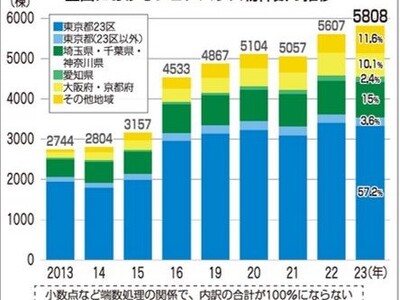 日本シェアハウス連盟が発表した「シェアハウス市場調査2023年度版」によると、全国のシェアハウス物件数は5,808棟(前年より201棟増)と増加傾向、市場は着実な拡大を続けています。