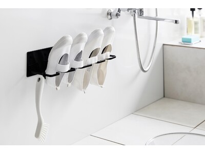 マグネットでバスルームの壁に簡単に取り付けられるシューズハンガーです。