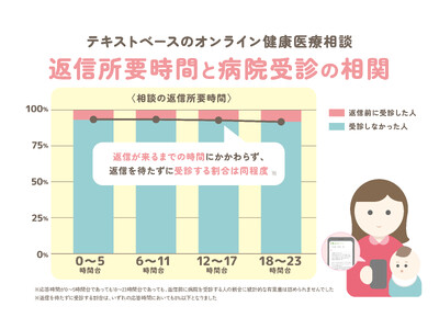 - 産婦人科の非同期型オンライン相談(テキスト形式)で、医師からの返信時間と「返信を待たずに病院を受診する行動」との間に、統計的な関連がないことが示されました。