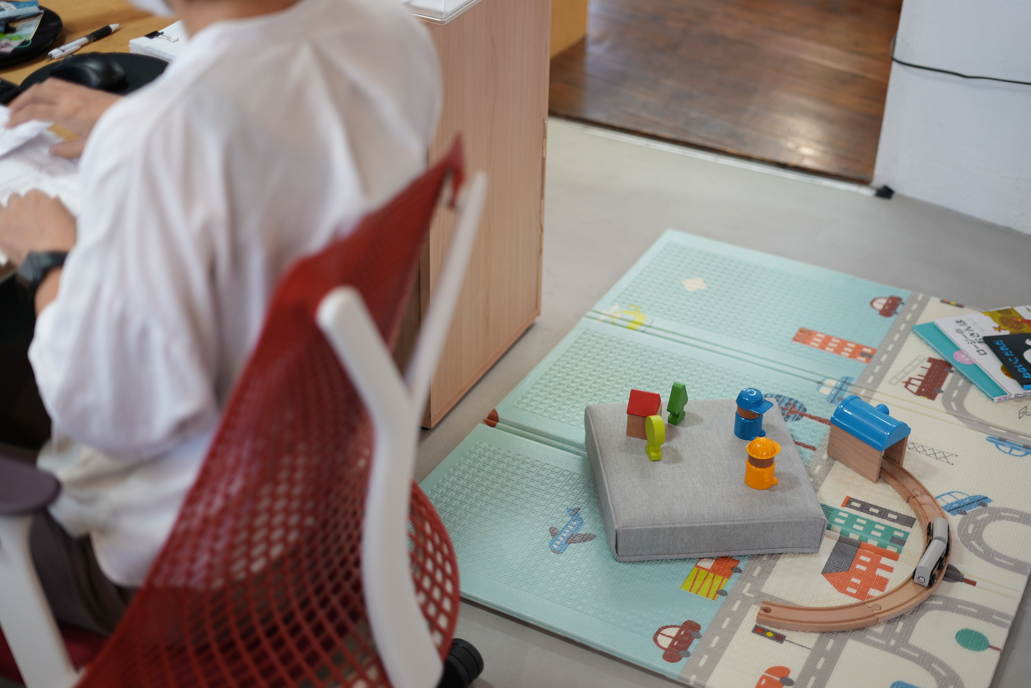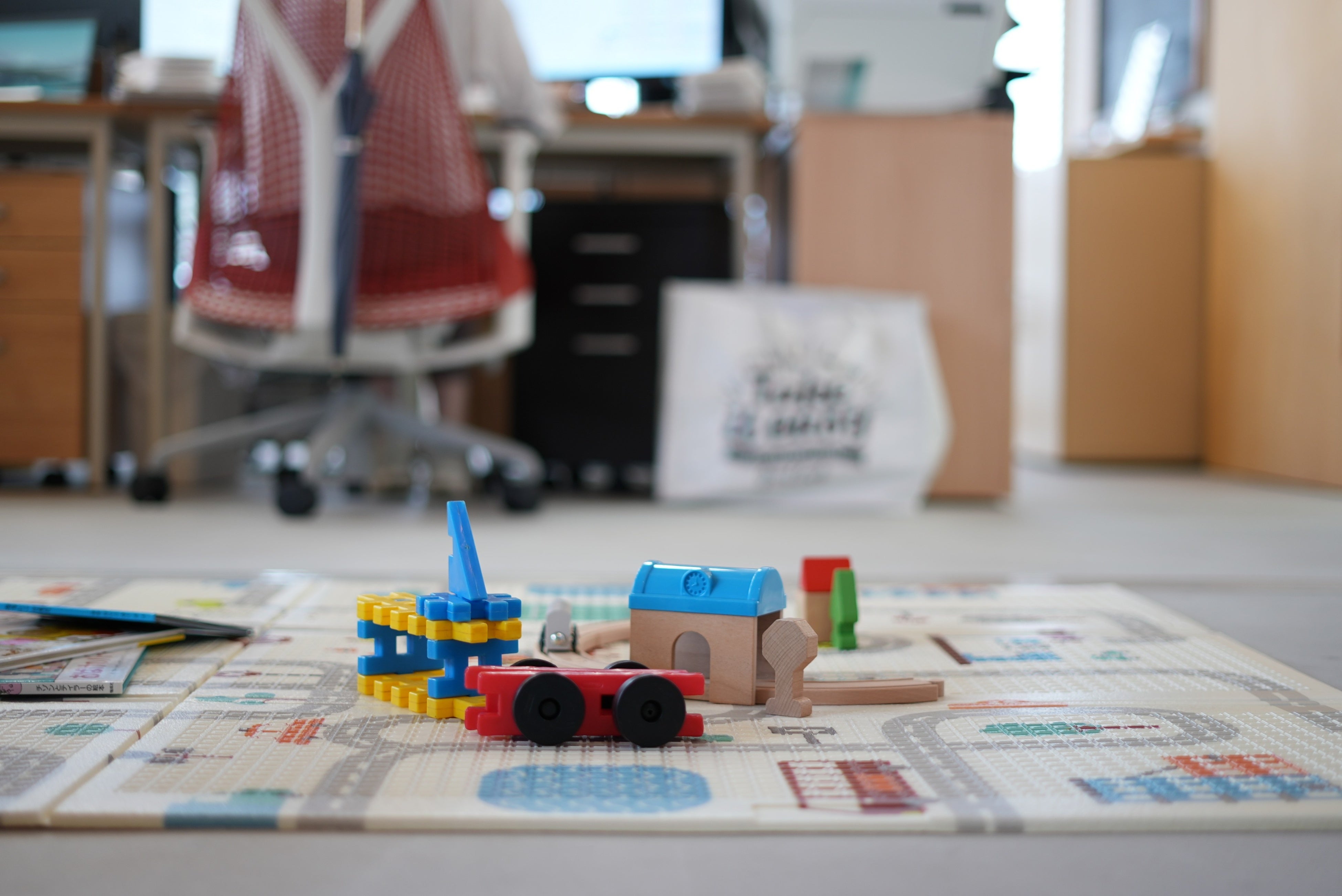 - 社内には子ども専用の安全スペースやおもちゃを完備