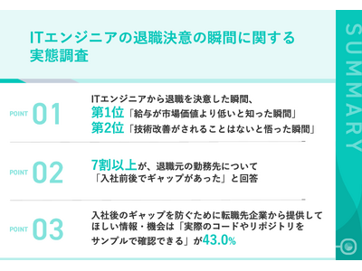 - 調査名称:ITエンジニアの退職決意の瞬間に関する実態調査