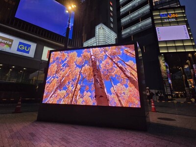 現在、静止画・ゆるやかな動画のみ放映しています。今後、「通常速度の動画広告」の放映を目指し、安全性・景観性などを検証する社会実験を実施予定です。
