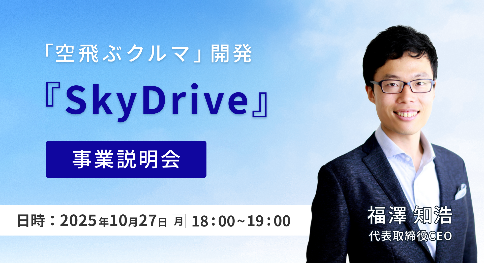 SkyDriveの市場やプロダクトをよりよく知っていただくことを目的として、SkyDriveの福澤代表による事業説明会を開催します。