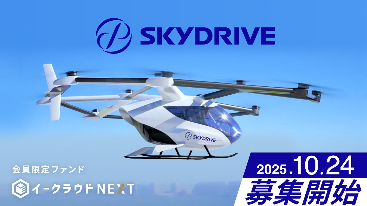 スタートアップと個人投資家を結ぶプラットフォームを運営するイークラウド株式会社は、「空飛ぶクルマ」の開発・製造を行う株式会社SkyDrive(スカイドライブ)に投資予定の会員限定ファンド「イークラウドNEXT」の募集を、2025年10月24日(金)から開始します。