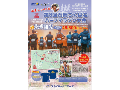 スカイパックツアーズ株式会社(本社:東京都中央区、社長:横山正巳)は、スカイマークを利用した価格固定型のパンフレット旅行商品「スカイステイション スカイマークPresents あまんちゃんと行く!第3回石岡つくばねハーフマラソン大会と茨城観光 2日間」」【新千歳空港発着】の販売を開始します。