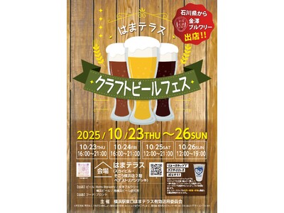横浜駅東口はまテラス有効活用委員会(横浜駅東口に所在する企業4社が加盟)は、2025年10月23日から10月26日の4日間、「はまテラス」にて「クラフトビールフェス」を開催いたします。本イベントは、神奈川県の地元ブルワリーを集めたビールフェスとして、様々なクラフトビールが楽しめるイベントです。
