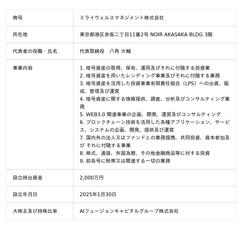 当社のグループ会社である、ミライウェルスマネジメント株式会社(以下、「MWM社」という)は、投資戦略の一環として、ビットコインを追加購入いたしましたので、以下の通りお知らせいたします。