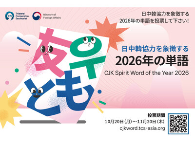 「日中韓協力を象徴する2026年の単語」オンライン投票キャンペーンを開始しました。本キャンペーンは、日中韓三国市民の相互理解と文化的親近感を深めることを目的に、日中韓協力への期待を込めて「日中韓協力を象徴する単語」(漢字語)を選定する毎年恒例の取り組みです。
