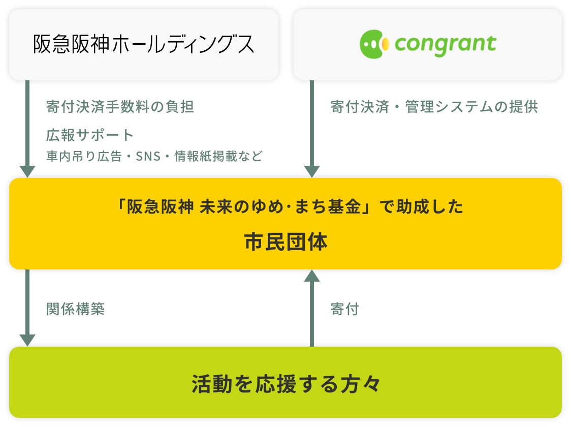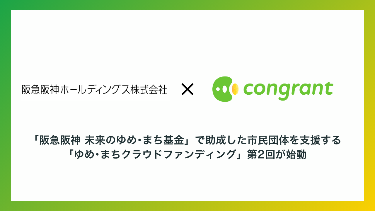 ソーシャルセクターおよび企業向けに寄付DXシステムを提供するコングラント株式会社(本社:大阪市西区、代表取締役:佐藤正隆、以下「コングラント」)は、阪急阪神ホールディングス株式会社(本社:大阪市北区、代表取締役社長 グループCEO:嶋田泰夫、以下「阪急阪神HD」)が、2025年11月4日(火)より開始する企業支援型クラウドファンディング「ゆめ・まちクラウドファンディング」(第2回)において、寄付決済・管理システムの提供および伴走支援を通じて、市民団体の活動を支援します。