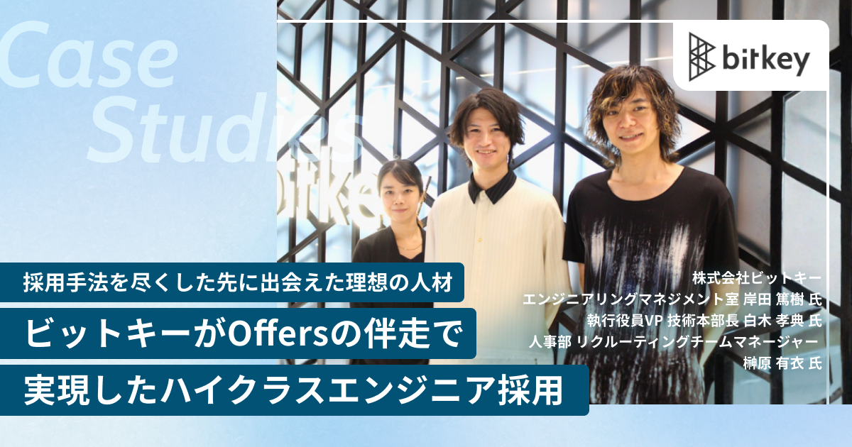 ハイクラスエンジニア採用プラットフォーム「Offers(オファーズ)」を運営する株式会社overflow(本社:東京都港区、代表取締役:鈴木裕斗、以下 overflow)は、日々の暮らしや、働く場での「体験の分断」を解消するサービスを提供している株式会社ビットキー(本社:東京都中央区、代表取締役:寳槻 昌則 氏)が、Offersの「リテーナープラン」を活用してハイクラス人材の正社員採用に成功したことをお知らせします。合わせて、ビットキー社がOffers導入後、どのように課題を解決し、理想的な採用を実現したのか、事例インタビューを公開いたしました。