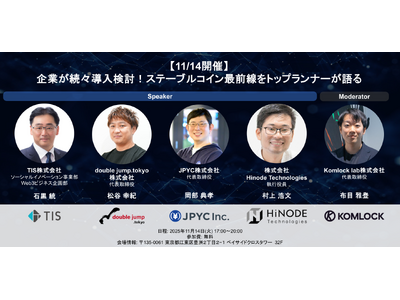 ブロックチェーン技術を活用したWeb3サービスを提供するdouble jump.tokyo株式会社(所在地:東京都新宿区、代表取締役:上野広伸・松谷幸紀、以下「当社」)は、TISインテックグループのTIS株式会社( 所在地:東京都新宿区、代表取締役社長:岡本安史、以下「TIS」))と共同でステーブルコイン活用をテーマにした無料イベントを開催いたします。